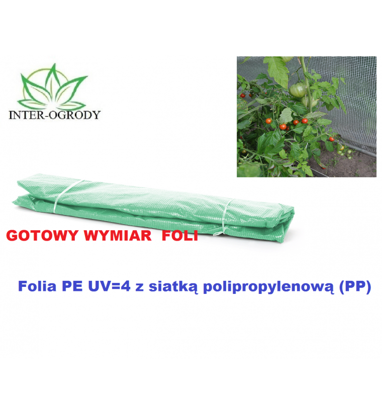 - Pokrycie: folia PE UV=4 z siatką polipropylenową (PP)